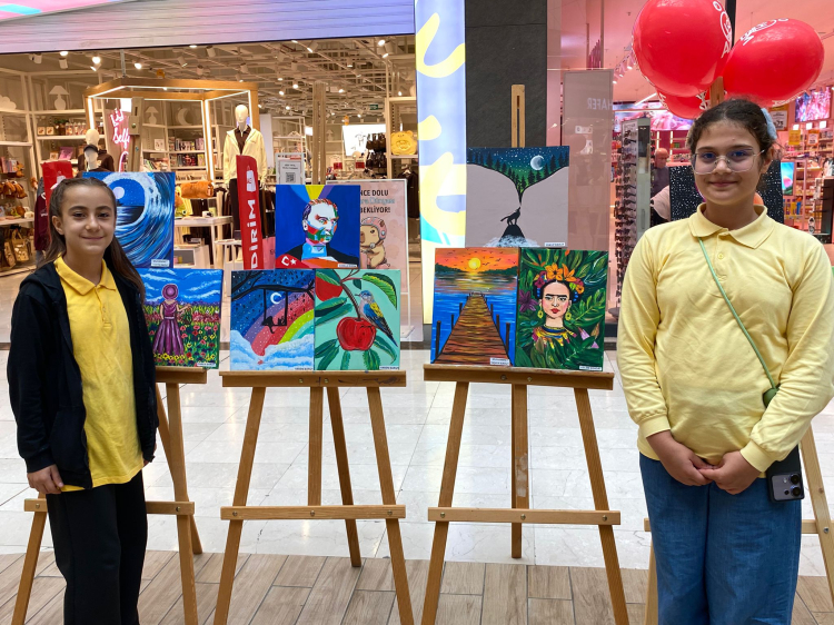 Resim Öğretmeni Simge Akaret, öğrencilerin serüvenine dair yaptığı konuşmada şunları söyledi; “4 aylık çalışma sonucunda yaz dönemini üreterek geçiren çocuklarımızın hayal dünyasına ortak olmak üzere çıktığımız yolu, bu sergi ile taçlandırdık.”