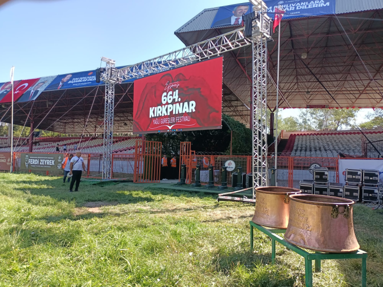 Edirne’de bu yıl 664’üncüsü düzenlenen Kırkpınar Yağlı Güreşleri’nde Er Meydanı’ndaki son hazırlıklar tamamlanıyor. Bugün saat 14.00’te başlayacak güreşlerde bu yıl kayıt yaptıran 762 pehlivanın Er Meydanı’na çıkması bekleniyor.
