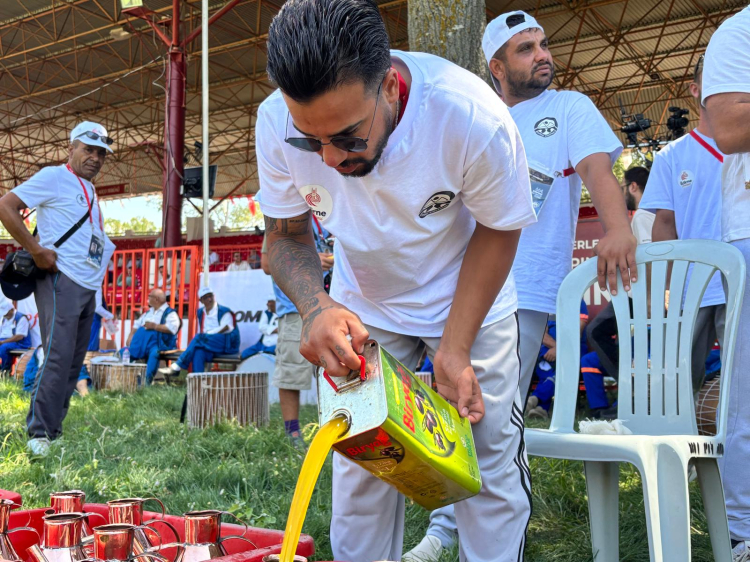Kırkpınar Baş yağcısı Faik Ütürükçü ise 5 yıldır baş yağcılık görevine devam ettiğini söyleyerek; “Geleneksel olarak tüm pehlivanlara yağ dökülür. Ama bizim döktüğümüz yağ, zeytin yağıdır. Diğer yerlerde zeytin yağı dökülmüyor. Burası Er Meydanı, burada özellik var. Özellik olmazsa olmaz. Başpehlivanlar geldiği zaman 5 litrelik bir güğümü bitiriyorlar. Zeytin yağı vücudu besliyor” diye konuştu.