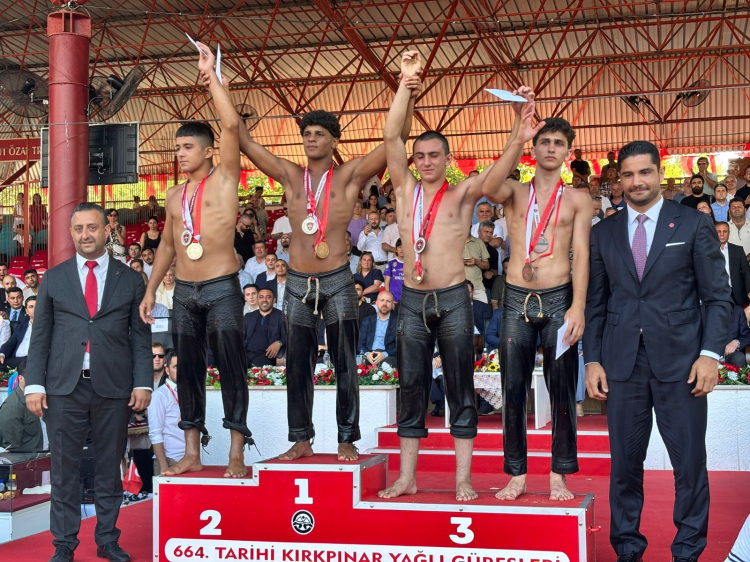 Gümüşdağ, Er Meydanı’nda düzenlenen ödül töreninde kürsüye çıktı. Gümüşdağ’a madalya ve ödülleri takdim edilirken; genç pehlivan Edirne güreşi için önemli bir başarıya imza attı.