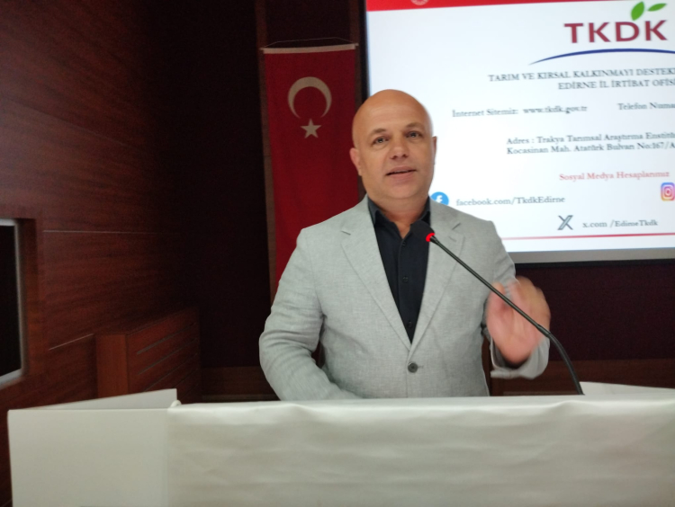 Saygı duruşu ve İstiklal Marşının okunmasıyla başlayan toplantının açılışında konuşan Çanakkale İl Koordinatörü Ümit Ortan TKDK’nın 13 yıl önce Çanakkale İl Koordinatörlüğünde hizmet vermeye başladığını, Edirne ve Trakya’nın diğer illerinde bilinirliğinin yeni yeni artmaya başladığını belirterek; “Tarım ve Kırsal Kalkınmayı Destekleme Kurumu yaklaşık 13 yıl önce Çanakkale İl Koordinatörlüğü’nde hizmet vermeye başladı. Sonrasında Edirne’mizde ve Trakya’mızdaki diğer illerimizde irtibat ofisleri kurarak hizmet vermeye başladık. 81 ilde hizmet veriliyor. Belirli bir bütçe söz konusu olunca da projeler yarışıyor. Bu yarışta da öne geçen Edirne’den de bir tane örnek projemiz var. Destek verdiğimiz proje, Kırcasalih beldesinde kırmızı et üreten besi işi projesi. Kırsal alanda faaliyetlerimizi çeşitlendirme konusunda vereceğimiz destekler konularında niyeti olanların proje hazırlayıp kurumumuza sunulmasını arzu ediyoruz” dedi.