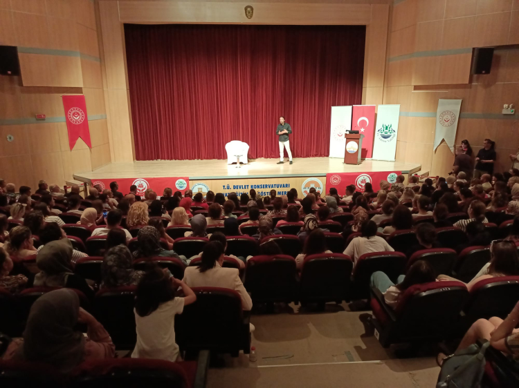 Trakya Üniversitesi (TÜ) Devlet Konservatuvarı Sanat, Eğitim ve Gösteri Merkezi’nde düzenlenen söyleşiye, Edirne Valisi Yunus Sezer’in eşi Canan Sezer, Aile ve Sosyal Hizmetler İl Müdürü Harun Tohumcu, kamu kurumu çalışanları ve vatandaşlar katıldı. Söyleşinin açılış konuşmasını gerçekleştiren İl Müdürü Tohumcu, 2025 yılının Aile yılı ilan edilmesinin önemini vurgularken; söyleşiye katılanlara teşekkür etti.