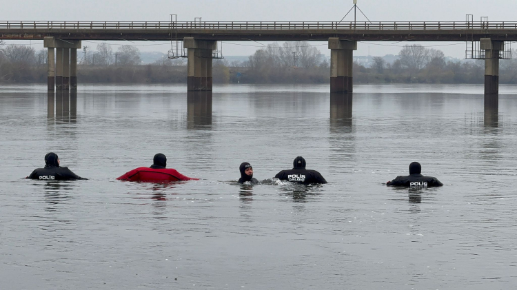 Tekirdağ Emniyet Müdürlüğü Deniz Limanı Şube Müdürlüğüne bağlı “kurbağa adamlar” giydikleri özel kıyafetlerle Meriç Nehri’ne dalış yaptı. Su altı arama cihazıyla da tarama yapan ekipler yaklaşık 7 saat arama yaptı.