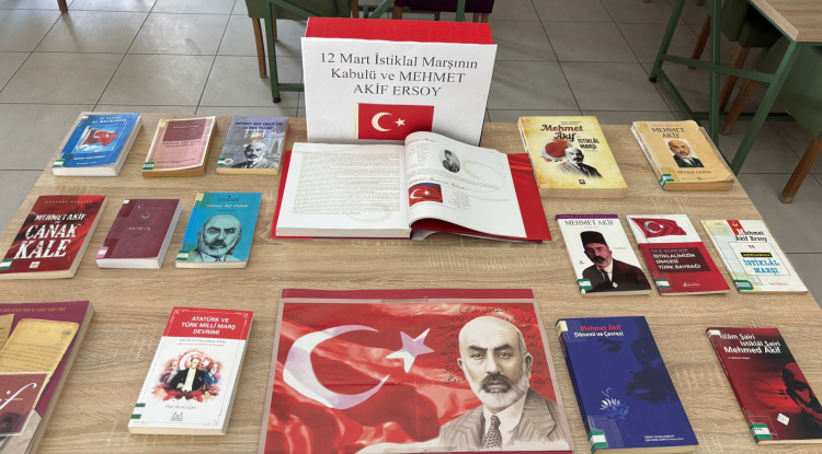 Edirne Kırkpınar Halk Kütüphanesi’nde, “12 Mart İstiklal Marşı’nın Kabulü ve Mehmet Akif Ersoy’u Anma Günü” kapsamında özel bir kitap sergisi açıldı. 9–15 Mart 2026 tarihleri arasında düzenlenen sergi, kütüphanenin giriş bölümünde ziyaretçilerin ilgisine sunuldu.