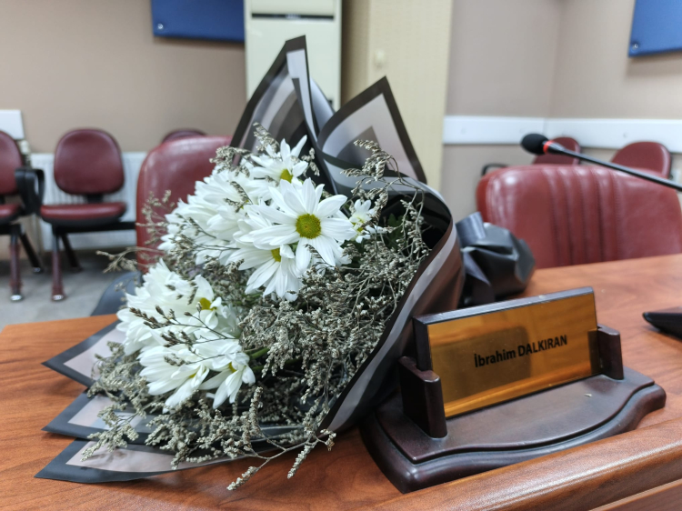Adalet ve Kalkınma Partisi (AK Parti) Meriç İl Genel Meclisi Üyesi İbrahim Dalkıran’ın dün vefat etmesi nedeniyle meclisteki sırasına çiçek bırakılırken; meclis üyeleri Dalkıran ile ilgili konuşma yaptılar.