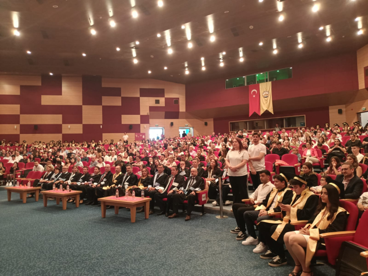 Balkan Kongre Merkezi’nde düzenlenen mezuniyet törenine; TÜ Rektör Yardımcısı Prof. Dr. Eylem Bayır, Uygulamalı Bilimler Fakültesi Dekanı Prof. Dr. Gökhan Sönmezler, akademisyenler, veliler ve öğrenciler katıldı.