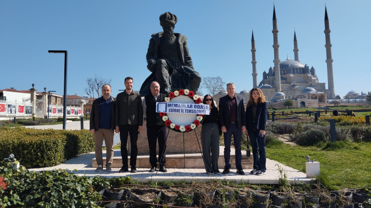 Mimarlar Odası Edirne İl Temsilciliği 6-17 Nisan tarihleri arasında kutlanan Mimar Sinan Haftası etkinlikleri kapsamında Selimiye Meydanı’ndaki Mimar Sinan heykeline çelenk bıraktı. Yönetim Kurulu Başkanı Atilla Ergin tarafından çelenk bırakma sonrası, bir dakikalık saygı duruşu gerçekleştirildi.