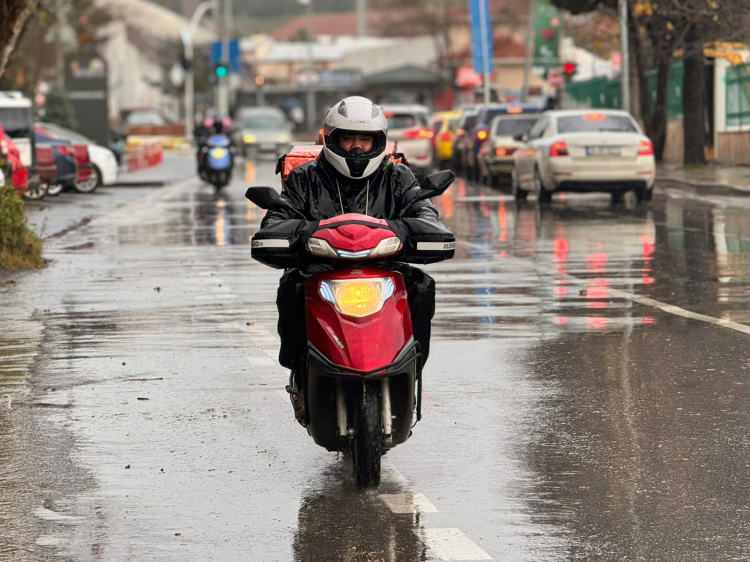 Kaskın camını kapatsalar buğudan, açsalar yağmurdan önünü göremeyen motokuryeler, görüş mesafesinin azalması nedeniyle her an kaza riskiyle karşı karşıya kalıyor. Edirne’de motokuryerlerin görünmeyen mücadelesi olan yağmurla imtihanı, yürekleri sızlatıyor.