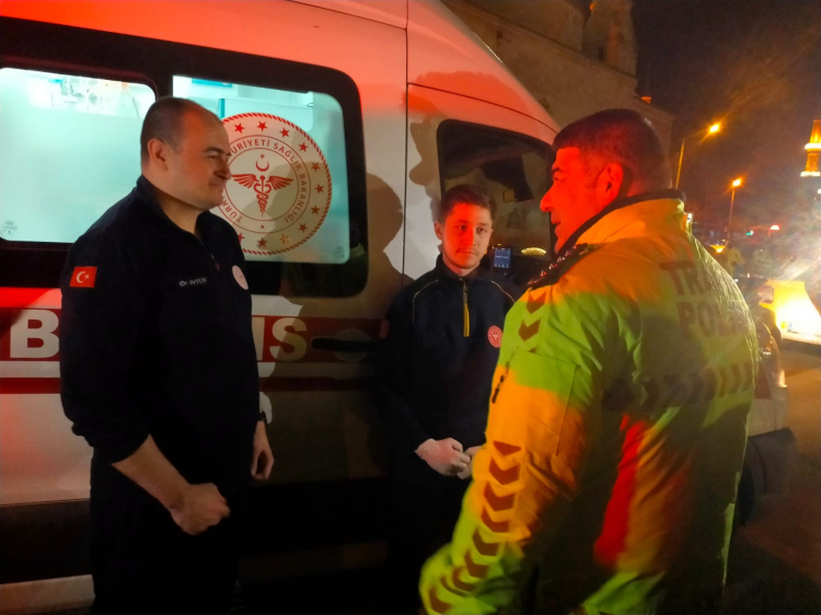Edirne İl Emniyet Müdürlüğü ekipleri tarafından Eski Camii önünde asayiş ve trafik denetimi gerçekleştirildi. Vaka dönüşü denetim noktasına gelen ambulans ekibini durduran İl Emniyet Müdürü Onur Karaburun, sağlık personelinin 14 Mart Tıp Bayramı'nı kutladı. Ekiplere çeşitli hediyeler veren Karaburun, başarılarını diledi.