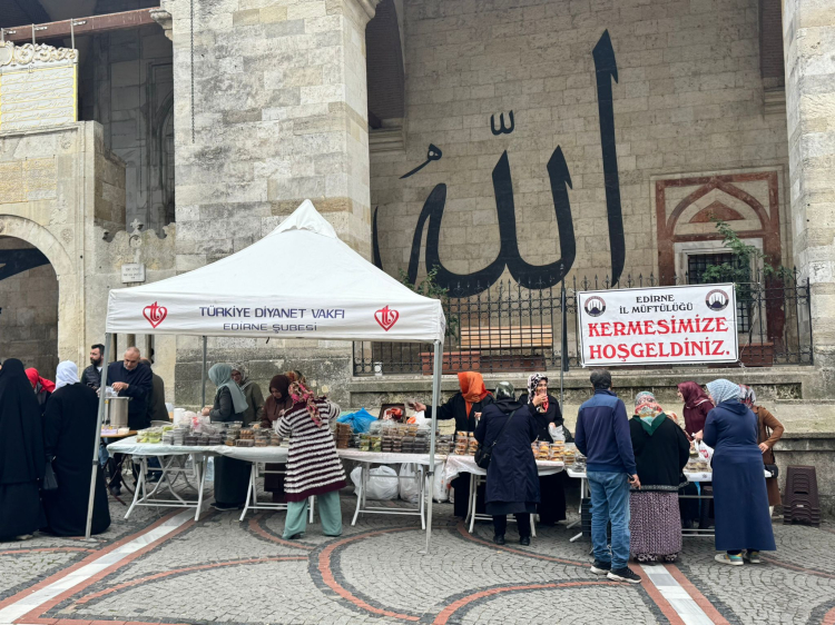 Edirne’de Eski Camii önünde düzenlenen ve akşam saatlerine kadar devam edecek olan kermeste, müftülük personeli ve gönüllü vatandaşların hazırladığı gıda malzemeleri satışa sunuldu. Edirneliler, kermese ilgi göstererek çeşitli yiyecekler aldı.
