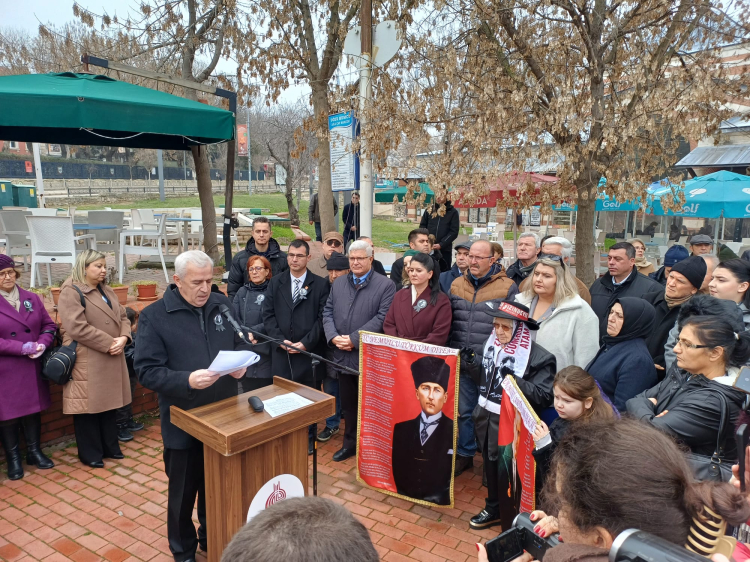 Burada konuşan ADD Edirne Şube Başkanı Celil Özcan, Uğur Mumcu’nun laikliğin ve demokrasinin yılmaz savunucusu olduğunu vurgulayarak, “33 yıl önce Karlı Sokak’taki evinin önünde aracına yerleştirilen bombayla katledilen ‘Kalpaksız Kuvvacımız Uğur Mumcu’yu saygıyla anıyoruz” dedi.