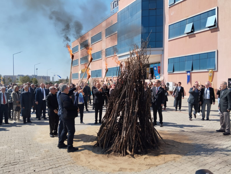 Nevruz ateşinin yakılması sonrası konuşan Trakya Üniversitesi Rektörü Prof. Dr. Mustafa Hatipler, nevruzun, bahara ulaşılan günün adı olduğunu belirterek; “Kışın sonunun bahar olduğunu bize müjdeleyen, son birkaç gün o soğuk havadan sonra bugün hem ellerimizin, hem de içimizin ısındığı bir bahar gününde sizlerle birlikteyiz. Bir bahar gününü kutluyoruz. Nevruz, Ergenekon'dan günümüze kadar özellikle Balkanlar’ın Mart 9'u olarak adlandırdığı ama özünde kışın bitip baharın geldiğinin müjdesini taşıyan bir gün. Eski takvimlerde kış Erbain ile başlar. Yani eski Kasım diye tabir edilen, eski Kasım'ın en soğuk günleri Erbain'dir. Erbain, kırk anlamına gelir. Erbain ne zaman başlar? Dönence ile başlar. Hani Şebi Yelda dediğimiz günle başlar ve kırk gün sürer. İşte Erbayin'den sonra gelen bir elli gün daha var. O günün de adı Hamsin'dir. Yani eski takvimle Kasım'ın 90'ını çıkmış olursunuz. Eski zamandaki yaşama göre Erbain’in o insanı donduran kışı, arkasından Hamsin’in yine Erbain’e yakın soğuğu, imkansızlıklar, yoksulluklar, darlıklar, sıkıntılardan sonra artık ölümler, hastalıklar geride kalmış ve insanlar bahara ulaşmışlardır. İşte bugün, o bahara ulaşılan günün adıdır. Nevruz Farsça; Nev yeni, Ruz gün anlamına gelir. Yeni gün demektir. Aslında buradaki yenilik, baharın ilk günü olarak adlandırabileceğimiz bir yeniliktir. Yeni bir gün, yeni bir mevsim, yeni bir yılın başladığı gündür Nevruz. Bizim için Nevruz bahardır, yeniliktir, bayramdır ve sudur. Aynı zamanda sevmektir, barıştır, sevgidir. Aslında bizim kültürümüzde insanın dostuyla birlikte olduğu her gün ve her an bayramdır. Bizler Nevruz olmasa da Trakya Üniversitesi mensupları olarak burada toplansak, o gün yine bizim için bayram günüdür. Ama bugün hem Nevruz, hem de birbirimizi gördüğümüz bir araya geldiğimiz gün olduğu için adeta iki defa bayramdır. Ömrünüz su gibi olsun. Nevruz'unuz kutlu olsun” dedi.
