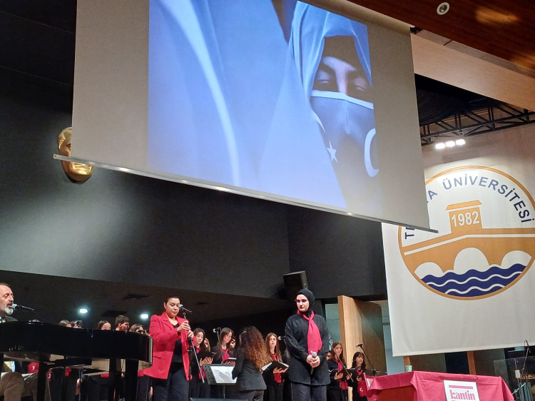 Programda öğrenciler; müzik, şiir ve görsel anlatımlarla sahne aldı. Etkinlikte Necip Fazıl Kısakürek’in “Bizim Şarkımız” adlı şiiri seslendirilirken, Filistin ve Doğu Türkistan’da yaşananlara dikkat çeken fotoğraflar izleyicilere duygusal anlar yaşattı.