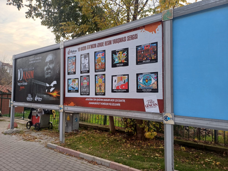 Atatürk’ü anmak ve Cumhuriyet’in değerlerini yaşatmak amacıyla düzenlenen yarışmada dereceye giren öğrencilerin resimleri, Edirne’nin farklı noktalarındaki reklam panolarında sergilenerek vatandaşlarla buluştu.