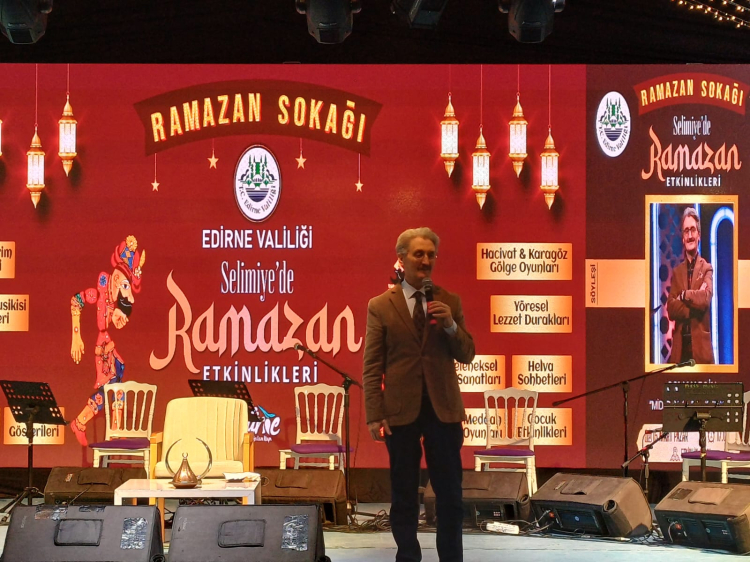 Edirne’de düzenlenen Ramazan Sokağı etkinlikleri kapsamında gerçekleştirilen programda Osman Egin, “Mideden Kalbe Giden Yol” başlıklı bir söyleşi gerçekleştirdi. Etkinliğe katılan vatandaşlara Ramazan ayının manevi yönü, oruç ibadetinin anlamı ve insan hayatındaki yeri hakkında konuşan Egin, önemli mesajlar verdi.