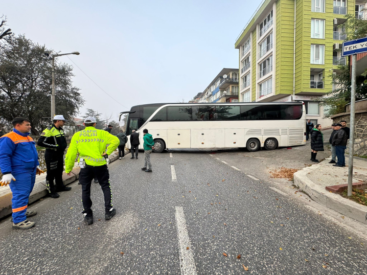 Bariyerlerin ve otobüsün zarar gördüğü kazada yaralanan olmadı. Kaza sonucu Ayşekadın semti istikametinden çarşıya giden yol trafiğe kapatıldı. Bölgeye gelecek vincin kaldırma çalışmalarının ardından yol trafiğe açılacak.