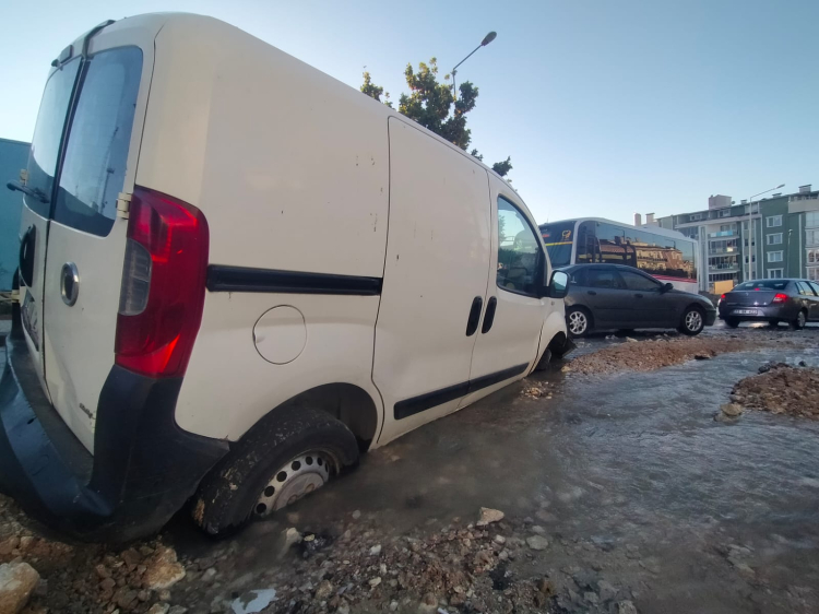 Bu sırada cadde üzerinde seyir halinde olan bir otomobil, oluşan çukura düştü. Sürücü aracı çukurdan çıkarmaya çalışsa da başarılı olamadı.