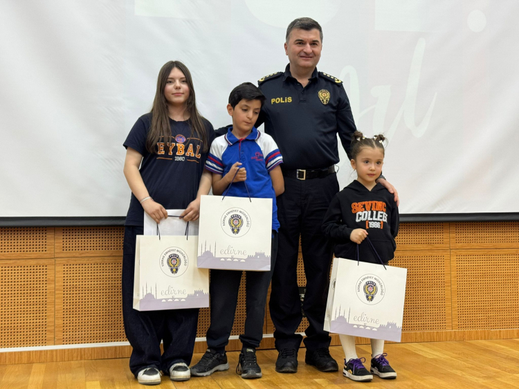 Edirne İl Emniyet Müdürlüğü’nde gerçekleştirilen program kapsamında, İl Emniyet Müdürlüğü personeli arasında düzenlenen spor turnuvalarında başarı sağlayan emniyet mensupları ile Milli Eğitim Müdürlüğü’ne bağlı okullarda düzenlenen "Ben Polis Olsam" konulu resim, şiir ve kompozisyon yarışmalarında dereceye giren öğrenciler ödüllendirildi.