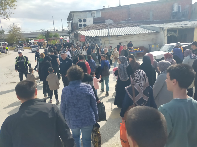 Cuma pazarına gitmek isteyen yayaların bireysel halde değil bekletilerek toplu halde geçişine izin verilirken, araçların da bekletilerek kontrollü şekilde ilerlemesi sağlandı.