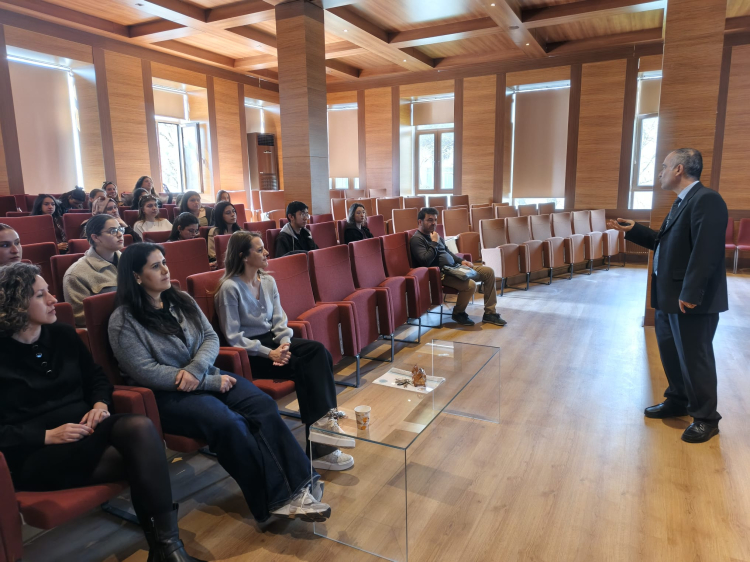 Mimarlık Fakültesi Mimar Sinan Amfisinde düzenlenen seminerde Su Ürünleri Uygulama ve Araştırma Merkezi Müdürü Prof. Dr. Utku Güner sunum yaptı.