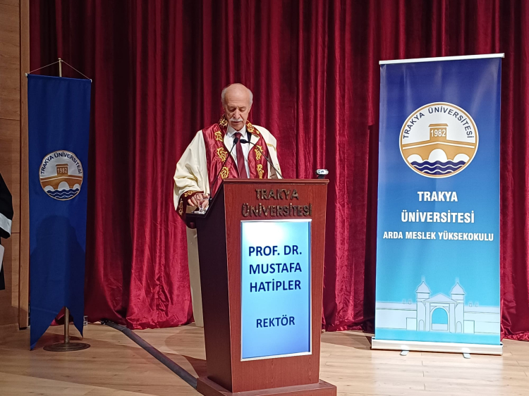 Edirne'de bugün Trakya Üniversitesi (TÜ) Arda Meslek Yüksekokulu 2024-2025 yılı mezuniyet töreni gerçekleştirildi. 143 öğrencinin mezun olduğu törenin açılış konuşmasını yapan TÜ Rektörü Prof. Dr. Mustafa Hatipler şu mesajı verdi: