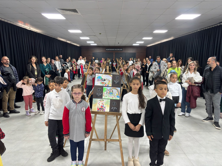 Yaklaşık 350 çalışma arasından seçilen eserler, üniversite öğrencileri tarafından özenle sahnelendi. Çocukların eğitim hayatında sanatın yerini güçlendirmeyi hedefleyen proje, aynı zamanda ilkokul çağındaki öğrencilerin eksiklerini tespit edip farkındalık oluşturmayı amaçlıyor. Renkli çizimler hem öğrencilerin hayal güçlerini hem de geleceğe dair umutlarını yansıttı.