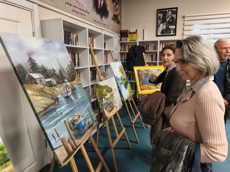 Kanuni Meşk Grubu’nun konserinin ardından sergi açıldı. “Renklerin Yolculuğu” adlı sergide Atalan’ın yağlı boya ile ürettiği 25 eser, sanatseverlerle buluştu. Eserlerde, çeşitli manzaralar yer alırken; Atalan’ın renk kullanımı dikkat çekti.