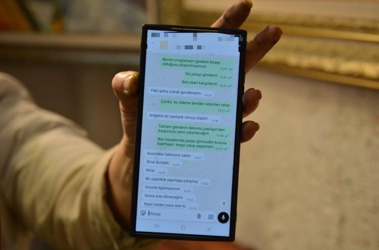 Eserin fiyatı konusunda 50 bin TL’ye anlaştıklarını belirten Özkal, alıcı olduğunu söyleyen kişinin kendisinden IBAN bilgilerini istediğini ifade etti. Özkal, IBAN’ını göndermesinin ardından karşı tarafın, ödemeyi şirket üzerinden yapacağını söylediğini belirtti.