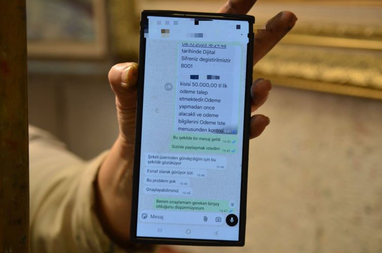Bir süre sonra bankasının mobil uygulamasına bildirim geldiğini anlatan Özkal, hesabına para gönderilmesi gerekirken kendisinden 50 bin TL para talep edildiğini fark etti. Durumdan şüphelenen Özkal, ekran görüntüsünü karşı tarafa gönderdiğinde şahsın “Bu şirket üzerinden gönderildiği için öyle görünüyor, onaylayın bir problem yok” dediğini aktardı.