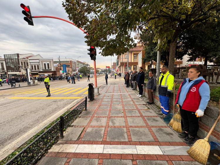 Atatürk’ün hayata gözlerini yumduğu saat 09.05'te sirenlerin çalmasıyla, saygı duruşunda bulunulup İstiklal Marşı okundu.
