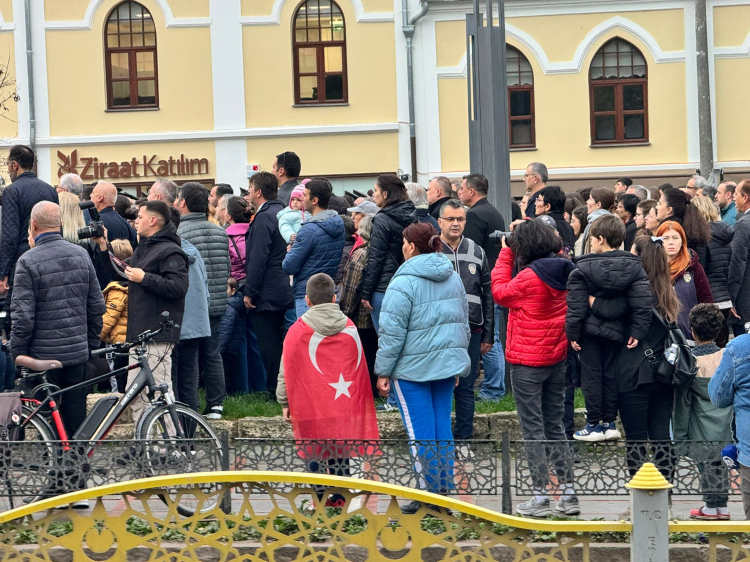 Trafik akışının durduğu caddede sürücüler araçlarından inerek saygı duruşunda bulundu. Hayatın durduğu o an her yaştan vatandaş saygı duruşuna katıldı.