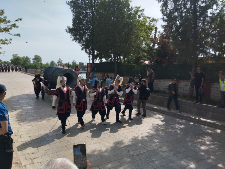 Edirne’de birçok etkinliğin yanı sıra, İstanbul’un fethinde önemli rol oynayan ve “Şahi” olarak adlandırılan topların maketleri Edirne’deki Meriç Nehri üzerinde bulunan tarihi Mecidiye Köprüsü’nden (Meriç Köprüsü) geçti. Törende temsili Fatih Sultan Mehmet ve yeniçeriler de yer aldı. Törenle geçen toplar Selimiye Camii önünde düzenlenecek törenlerin yapılacağı alana götürüldü.