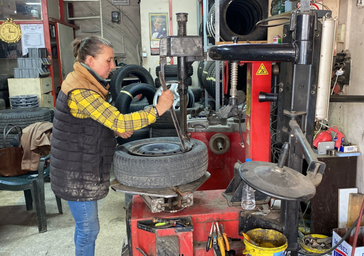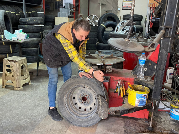Sanayide yaklaşık 20 yıldır aktif olarak çalışan Cankıran, lastik sökme, balans ayarı, tamir, montaj ve satış gibi tüm işleri tek başına yapıyor. Kadınların her alanda başarılı olabileceğini belirten Cankıran, şunları söyledi;