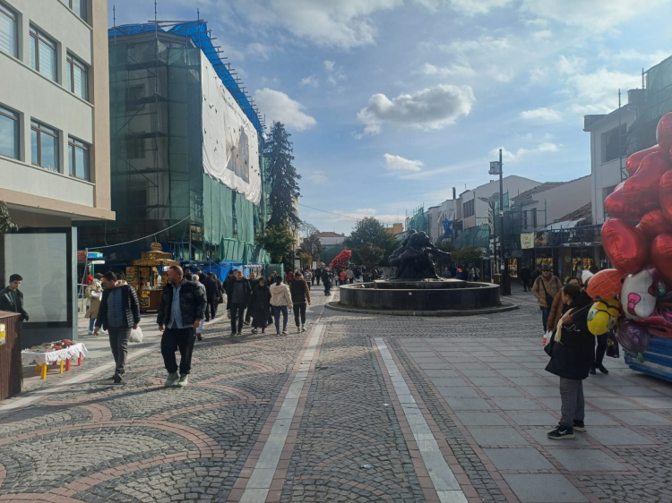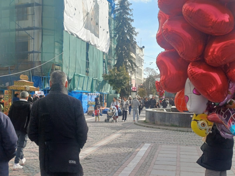 Edirne'nin yoğunluğuyla bilinen trafiğe kapalı Saraçlar Caddesi, 14 Şubat Sevgililer Günü coşkusu yaşıyor.
