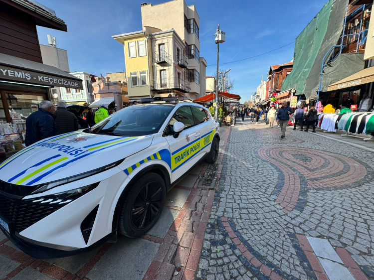 Edirne İl Emniyet Müdürlüğüne bağlı trafik polisleri araç trafiğine kapalı Saraçlar Caddesi’nde trafik denetimi gerçekleştirdi.