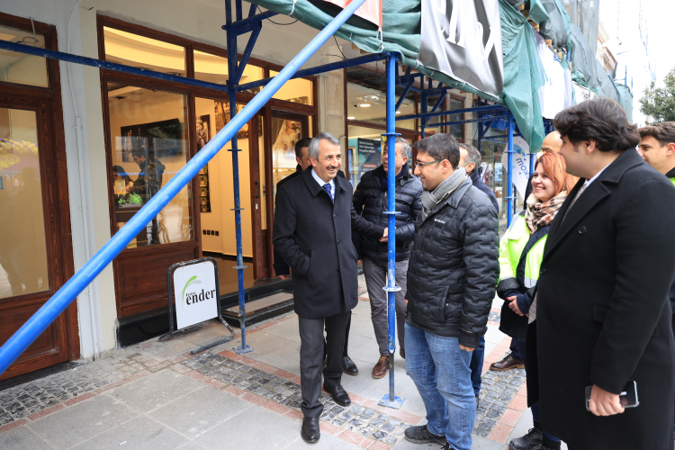Vali Sezer, Saraçlar Caddesi'ndeki çalışmalarla ilgili bilgi aldı ve esnafla sohbet etti.