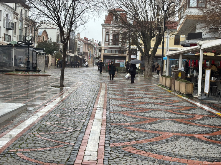Edirne’de etkili olan yağmur, kent genelinde günlük yaşamı yavaşlattı. Yağış nedeniyle vatandaşlar şemsiyeleriyle yürürken, bazıları dükkân tentelerinin altına ve kapalı alanlara sığınmayı tercih etti.