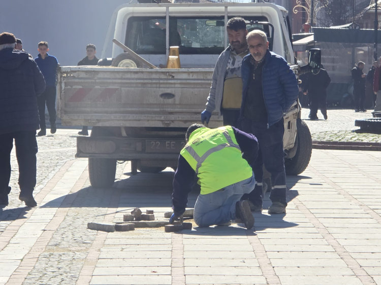 Edirne şehir merkezindeki araç trafiğine kapalı olan Saraçlar Caddesi’ndeki paket taşların durumu vatandaşlar tarafından birçok kez şikayete ve habere konu olmuştu. Zaman zaman vatandaşların takılıp düşmesine neden olan düzensiz paket taşlar için Edirne Belediye ekipleri bugün harekete geçti. Belediye ekipleri yaptıkları çalışmada bozulan yerleri onarırken eksilenleri de yenileriyle tamamlamaya başladı.