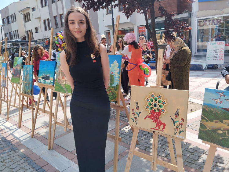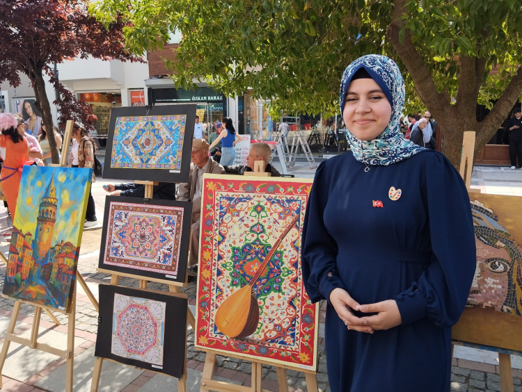 Trakya Üniversitesi 4’üncü Sınıf Hemşirelik öğrencisi Zeynep Sude Arslan ise şunları ifade etti: “Bu sergimizde ben Türk kültürüne ait ögeleri resme yansıttım. Öncelikle ne kullanabiliriz diye düşündüm ve bağlamadan, Türk kahvesinden ve çaydan esinlendim. Bugün burada olmaktan arkadaşlarımla beraber çok mutluyuz. 19 Mayıs’ta eserlerimizin sergilenmesi çok guru verici” dedi.