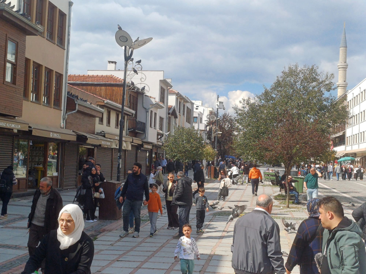 Edirne’de hava sıcaklığının 21 dereceye kadar yükselmesiyle birlikte kentte hareketlilik arttı. Güzel havayı fırsat bilen vatandaşlar ve turistler, kentin en işlek noktalarından biri olan Saraçlar Caddesi’ne akın etti.