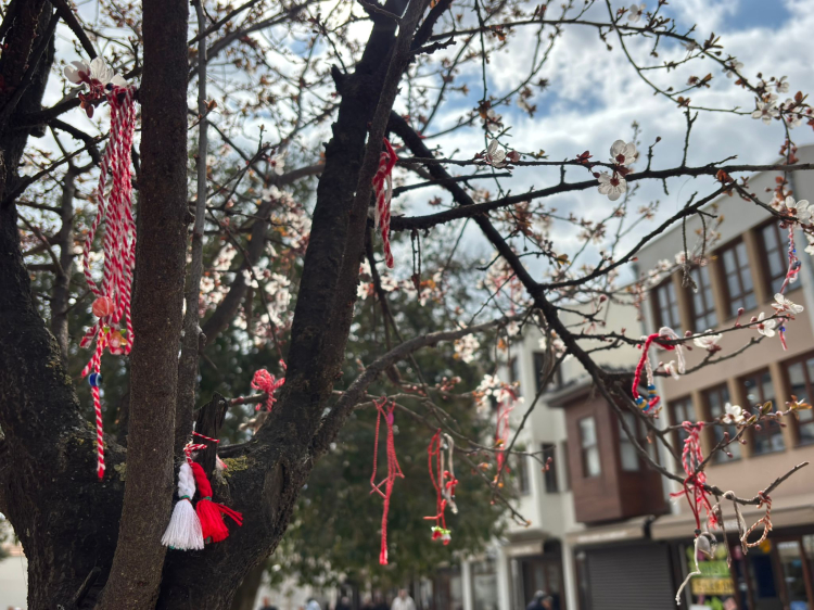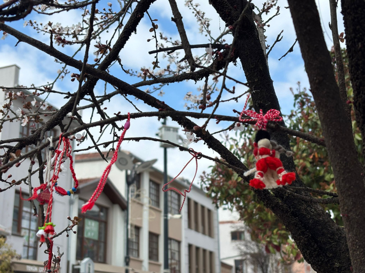 Saraçlar Caddesi’nde bulunan bir ağaç ise vatandaşların astığı marteniçkalarla adeta dilek ağacına dönüştü. Ağacın dallarına asılan çok sayıda marteniçka, hem baharın gelişini simgeledi, hem de caddeye renk kattı.