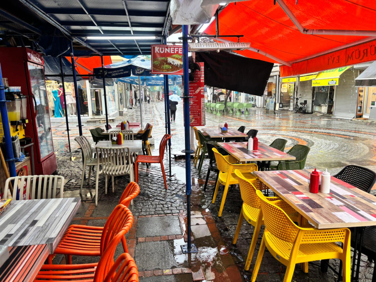 Kurulan iskeleler nedeniyle tente açamayan işletmeler, masalarına oturmak isteyen müşterileri yağmur sularından koruyamadı. Bazı dükkanlarda su baskınları yaşanırken, elektrik kesintileri de işlerin aksamasına neden oldu.