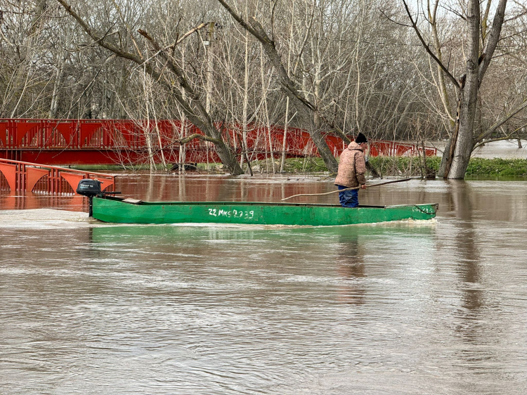 Edirne’deki nehirlerde yaşanan taşkın nedeniyle araç ve yaya trafiğine kapatılan Fatih, Kanuni ve Yalnızgöz köprülerinin çevresi adeta dev bir göle dönüştü. Bölgedeki su seviyesinin yüksekliğini fırsat bilen bir vatandaş, geleneksel bir balıkçı kayığıyla Sarayiçi Er Meydanı ve Adalet Kasrı çevresinde tur attı.
