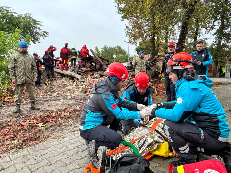 Edirne İl Sağlık Müdürlüğü ekipleri tarafından deprem tatbikatı gerçekleştirildi. Tatbikat senaryosu gereği Saros Körfezi’nde meydana gelen 6.2 büyüklüğündeki deprem, Edirne’nin Karaağaç Mahallesi’nde metruk binanın yıkılmasına neden oldu.