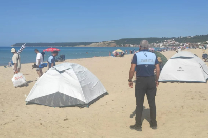 Belediyeden yapılan açıklamaya göre, zabıta ekipleri, sahillere izinsiz çadır kurmanın yasak olduğunu belirtti.