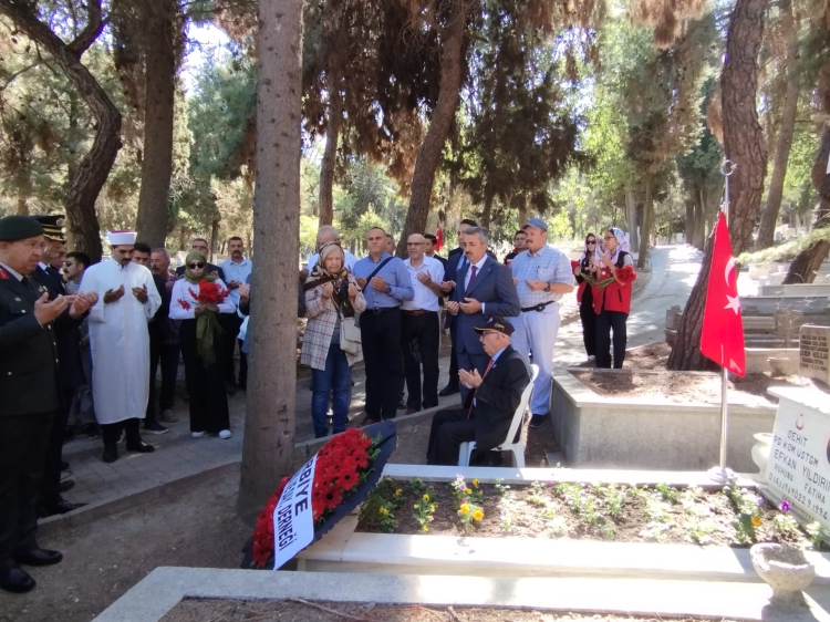 Tören, şehitlerin kabirlerinde dua okunmasıyla başladı. Dua bitiminden sonra şehitlerin mezarına çiçek bırakıldı.