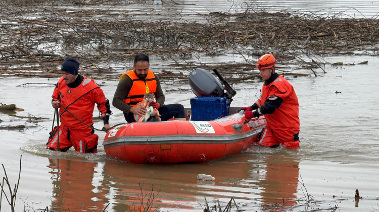 Suların yükselmesiyle evlerinde ve eklentilerinde mahsur kalan kedi, köpek ve diğer çiftlik hayvanları için botlarla bölgeye giren ekipler, ulaştıkları hayvanları güvenli alanlara taşıyor. Ekipler çalışmalarına devam ederken, mahsur kalan hayvanların can güvenliği sağlamaya devam ediyor.