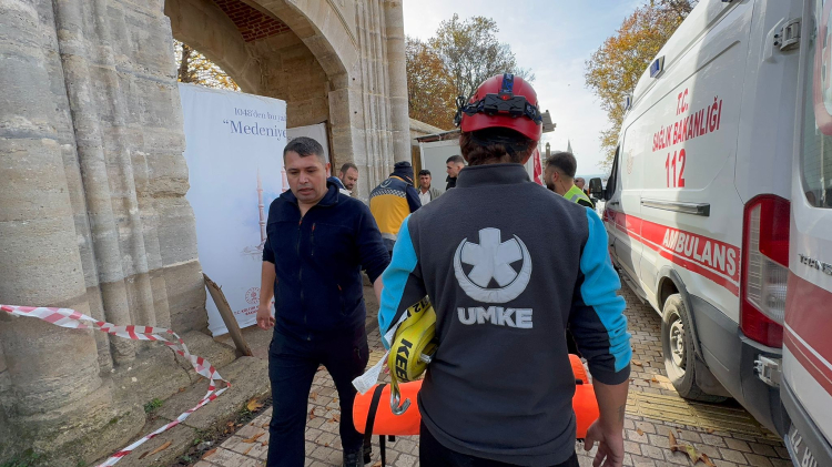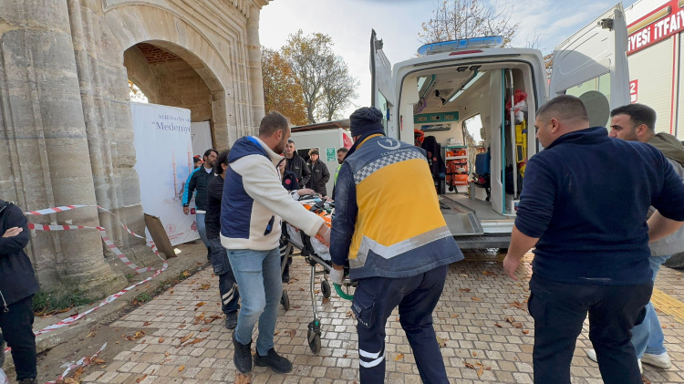 Selimiye Camii’nde restorasyon çalışmaları esnasında işçilerden N. A. dengesini kaybederek merdivenden aşağı düştü. İhbar üzerine olay yerine ambulans, itfaiye, polis, AFAD ve UMKE ekipleri sevk edildi.