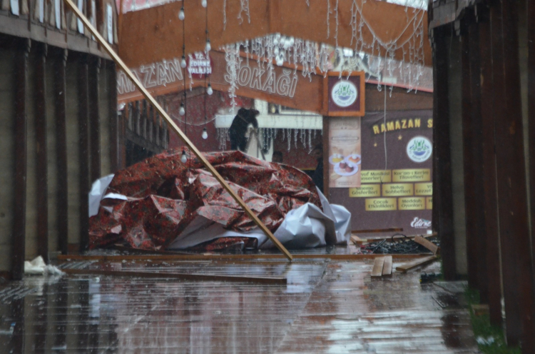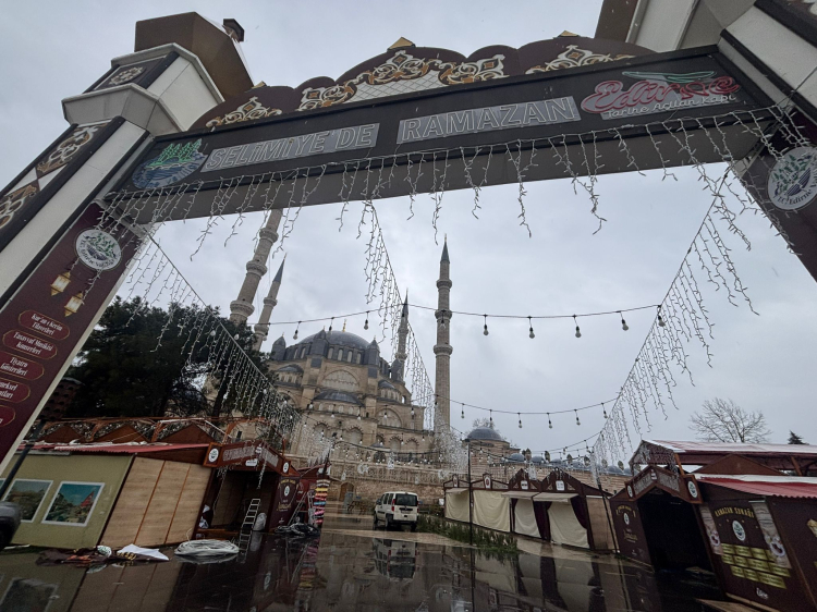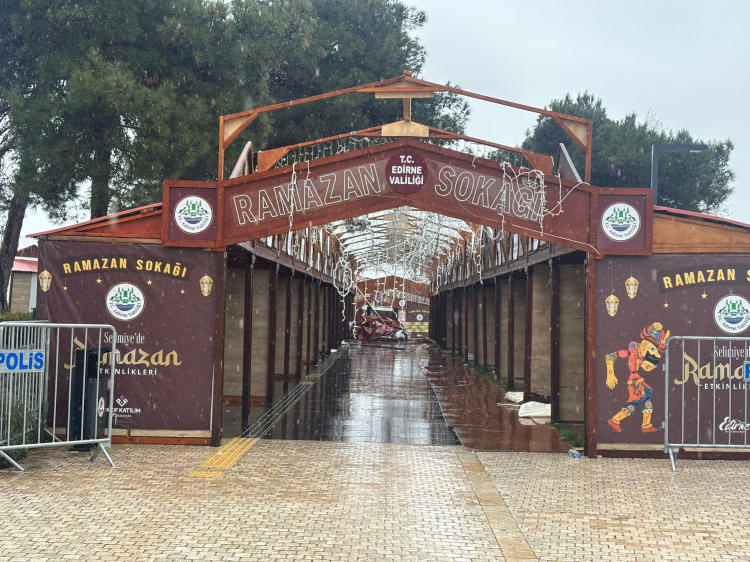 Edirne’de Selimiye Meydanı’nda, Edirne Valiliği tarafından bu yıl ilk kez kurulan Ramazan Sokağı kaldırılmaya başlandı.