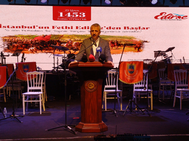 Edirne’de bugün gerçekleştirilen İstanbul’un Fethi kutlamaları kapsamında Selimiye Camii Meydanı’nda kurulan etkinlik alanında gerçekleştirilen program, saygı duruşu ve İstiklal marşının ardından okunan Kur’an-ı Kerim ile manevi bir atmosfer hâkim oldu.